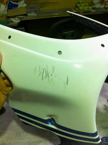 GSX1400アッパーカウル(FRP製の社外品) 立ちゴケ傷修理