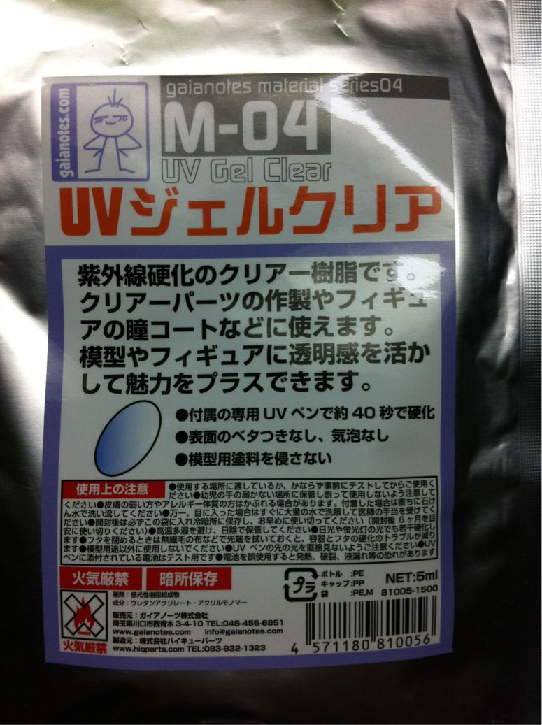今回、目の艶出しに紫外線硬化型クリアーというのを始めて使ってみました。